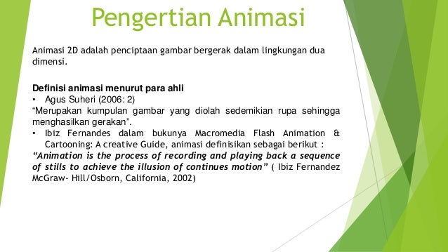 Pengertian Animasi 2D Dunia perfilman menyediakan tontonan untuk semua kalangan. Teknik Animasi 2D Pengertian animasi secara konsep adalah sebuah proses merekan dan memainkan kembali serangkaian gambar statis untuk bisa mendapatkan ilusi pergerakan dari gambar tersebut. Pengertian Animasi 2D dan Animasi 3D.